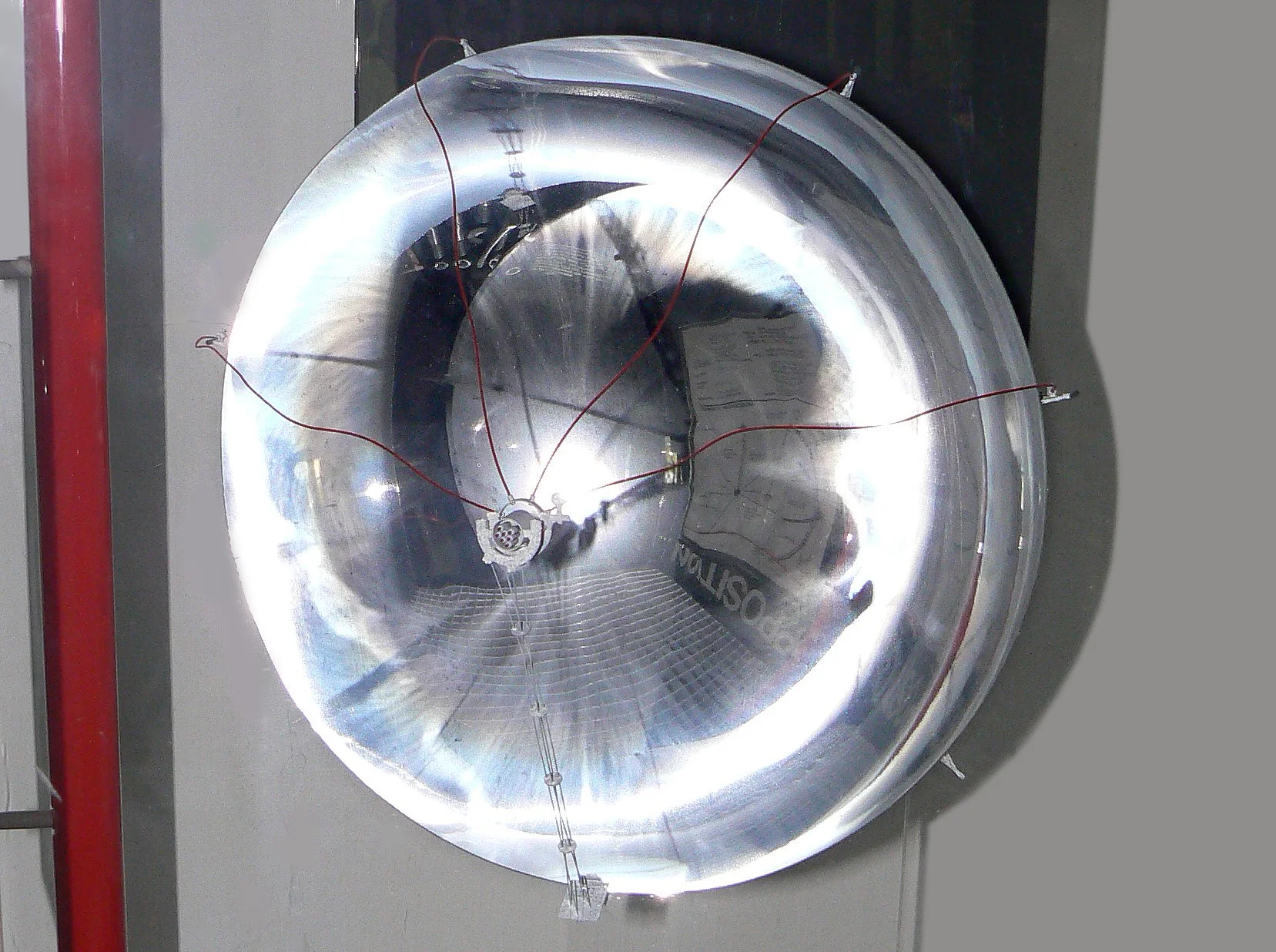 THIS DISPLAY CASE was the first of four proposed “exhibits” intended to present solutions to a quartet of problems that have plagued mankind for millennia. Meant to resemble the commercial product displays commonly seen in airports, railway stations, bus terminals and other public places, Opposition promotes Joinfast-brand connectors made by the MOTAM Corporation, bolts that will be used in a Time Mirror. Represented by a scale model, the Time Mirror is a space-based reflector platform that captures light radiated from Earth and over time returns it, thus creating a window into the past. The human tendency to foment division, the “we/they” opposition, can thus be overcome by recreating the period when there was only the singular “we.” The Time Mirror is, of course, a fanciful machine and MOTAM is a fictitious company, but Opposition is meant to evoke in the viewer a sense of the absurd cloaked in mundane utility – the rational/irrational conjunction once again. The other three dilemmas to be addressed were Perception, Power and Meaning. A second case for Perception was started in 1991, but the entire work was never completed.